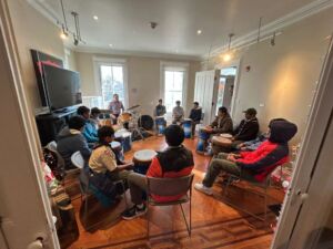 Let loose- colonial style! To mark the 6-month countdown to America’s 250th birthday on July 4th, 2026, the museum invited percussionist and museum educator, Justin Vedovelli, to hold THE BEAT OF THE REVOLUTION, an all-ages Revolutionary War drum circle.