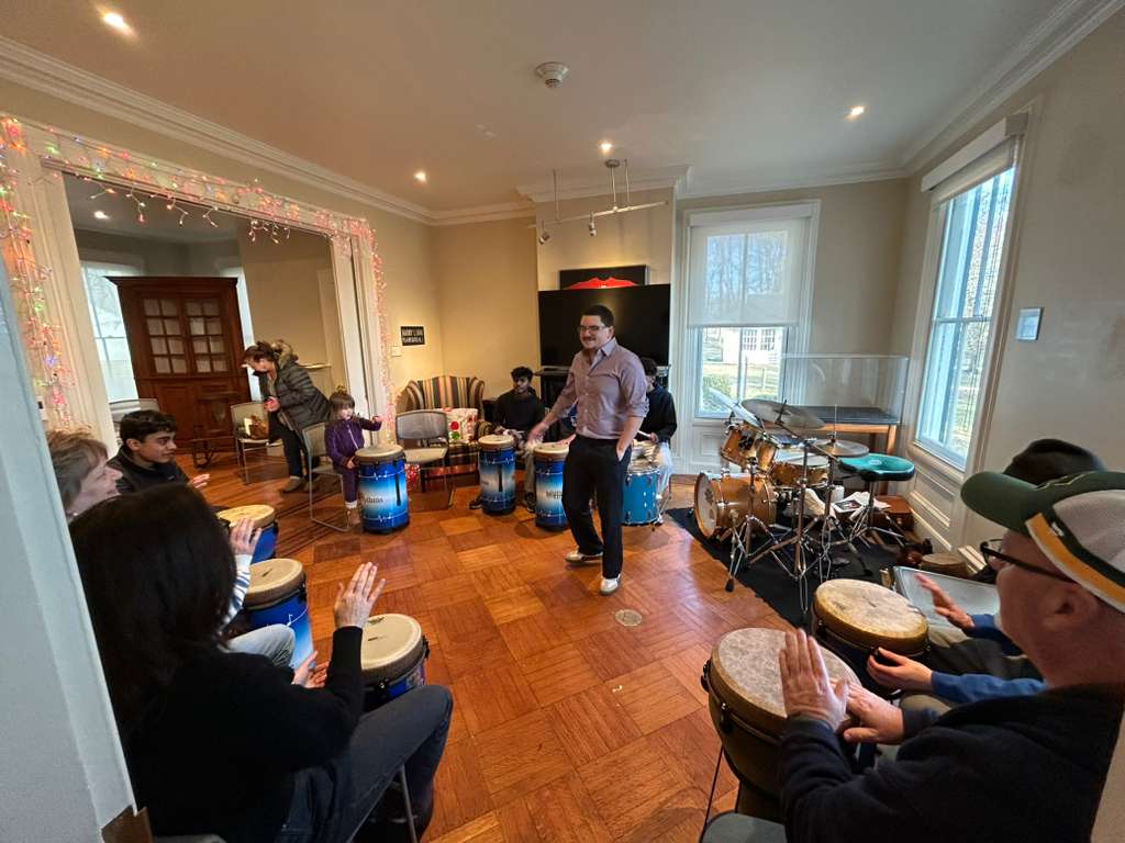 Let loose- colonial style! To mark the 6-month countdown to America’s 250th birthday on July 4th, 2026, the museum invited percussionist and museum educator, Justin Vedovelli, to hold THE BEAT OF THE REVOLUTION, an all-ages Revolutionary War drum circle.